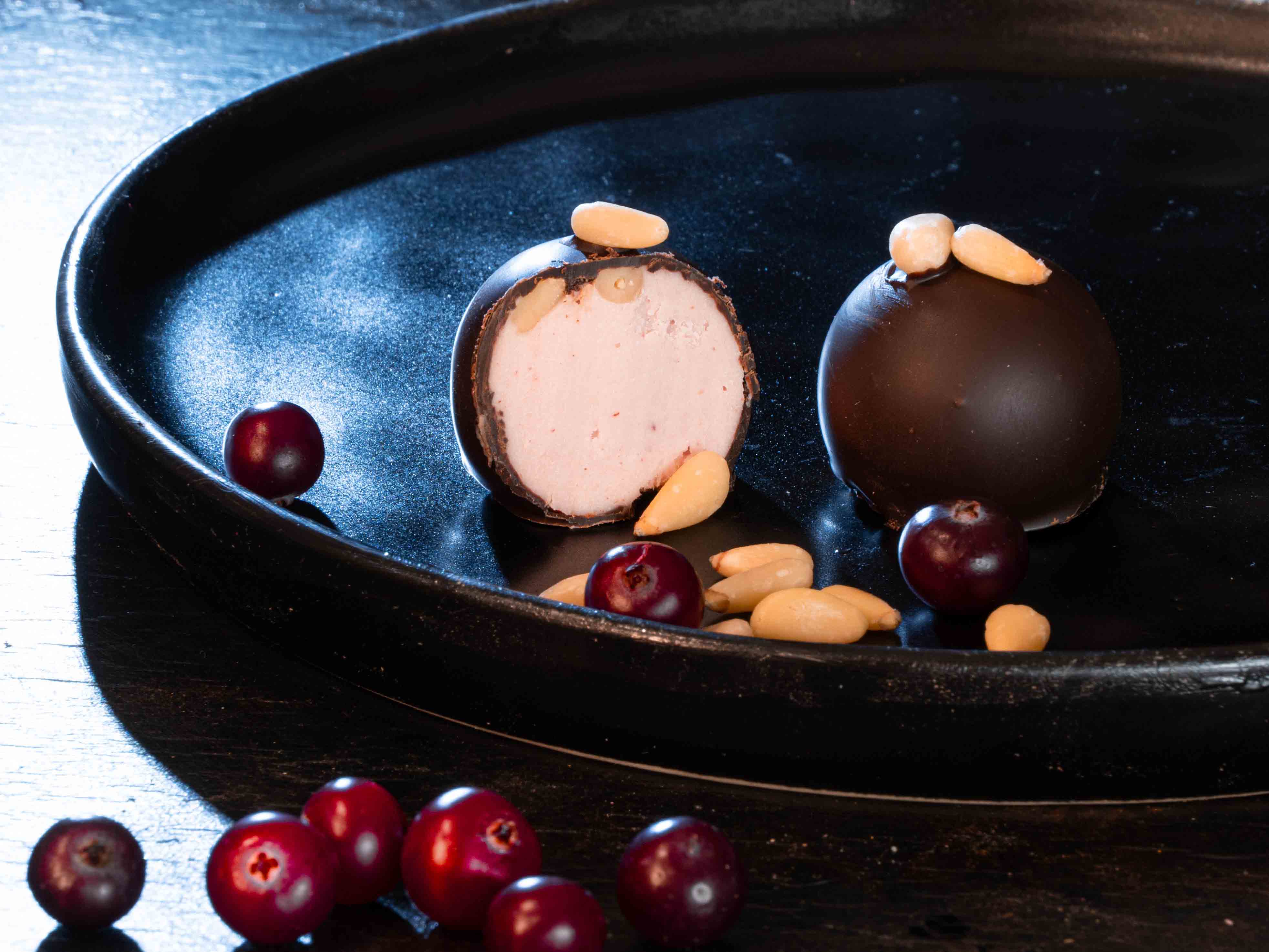 Горький шоколад без сахара(масло какао, тертое какао, подсластитель: аллюлоза, экстракт ванили) Белый шоколад без сахара(какао масло, цельное сухое молоко,подсластитель: аллюлоза, экстракт ванили), сливки 33%, ягоды сублимационной сушки, варенье малиновое на аллюлозе, варенье вишневое на аллюлозе,варенье смородиновое на аллюлозе, варенье клюквенное на аллюлозе, цукаты апельсиновые на аллюлозе, цедра апельсина, сироп аллюлозы, масло сливочное несоленое, ваниль, корица, бобы Тонка, паста фисташковая, фисташка дробленая